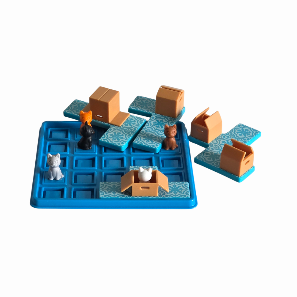 Verplaats dan de puzzelstukken één voor één totdat alle katten in een kartonnen doos terecht komen. Een puzzelspel voor jong én oud in een compact formaat. Met 60 opdrachten, van makkelijk tot razend moeilijk, huur je zeker geen kat in de zak.